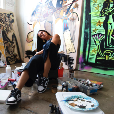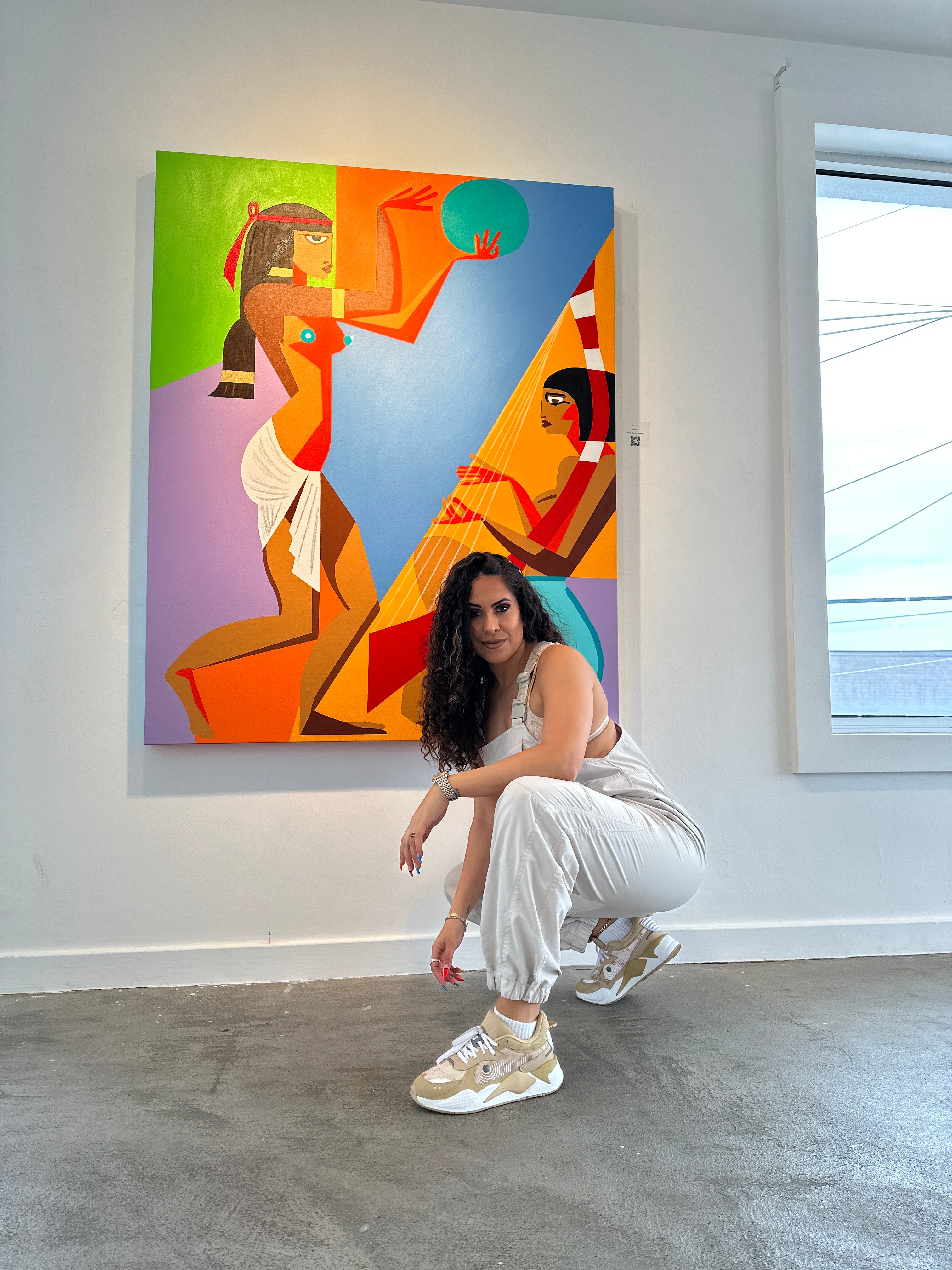 As a woman, an Egyptian and an artist, there’s often pressure to fit into a mold, to speak just loud enough to be palatable, but not so loud that it makes people uncomfortable. The shadow across the face almost mimics a hand trying to silence her, censor her, or control how much of her is allowed to exist in public spaces.