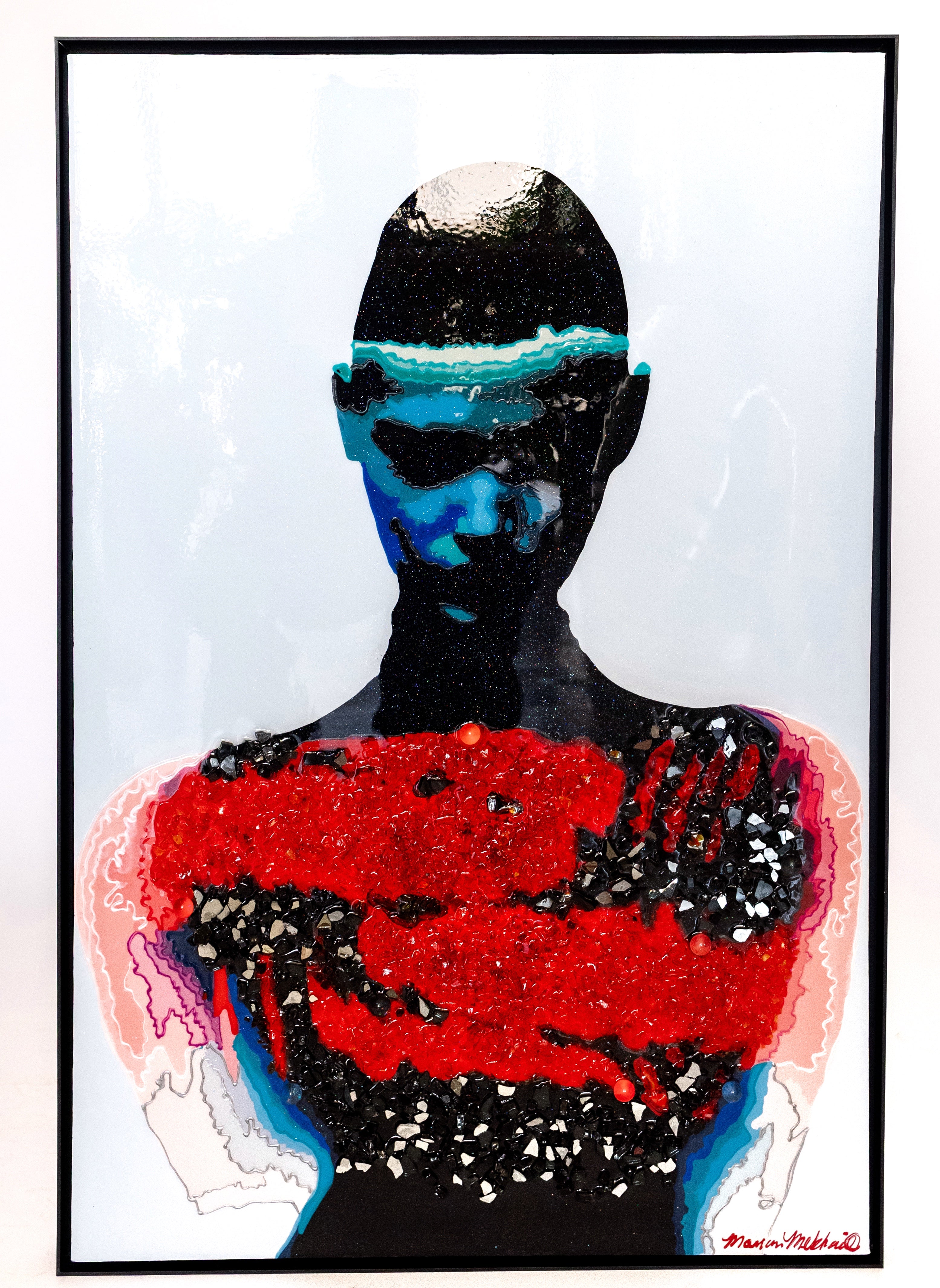 Acrylic, Crushed Glass on Canvas in Custom Floater Frame