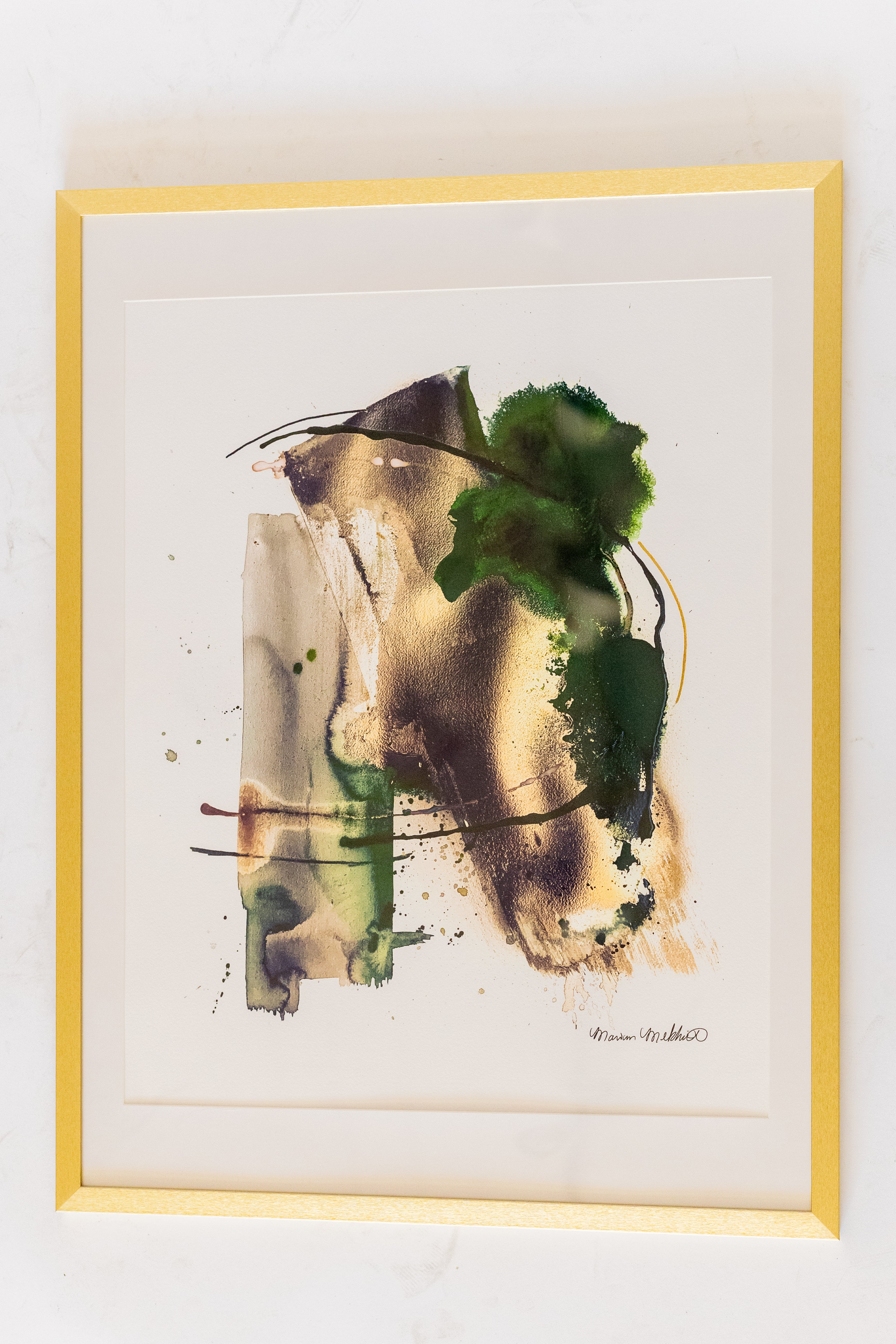 Mixed Media on Paper in Gold Frame