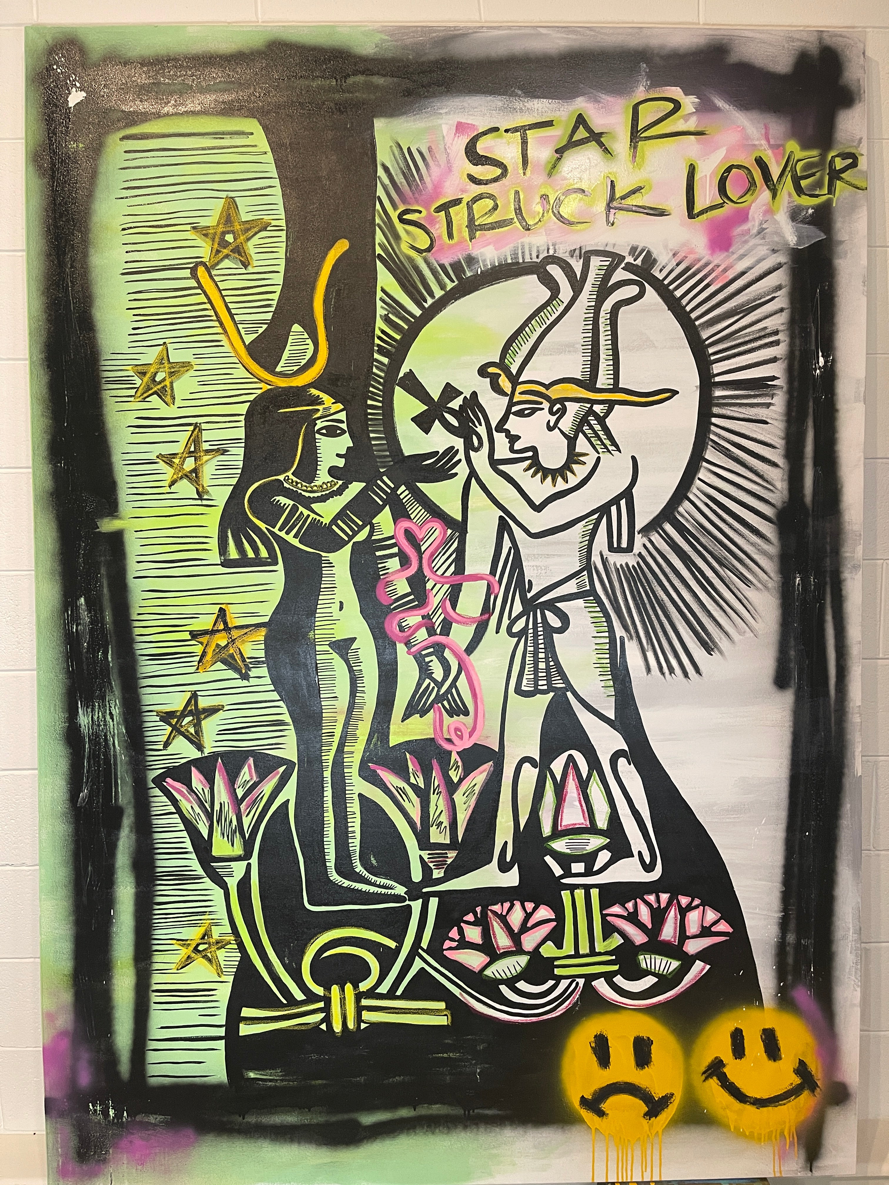 While she could have opted to remain in current life with Ramses, the goddess chose to wait for him in the afterlife, so that he may successfully fulfill his mission as Pharaoh. With this piece, I am stating that I am in fact Pharaoh Ramses in this image, fulfilling my purpose as an artist in this lifetime, and my true love is waiting for me in the afterlife.